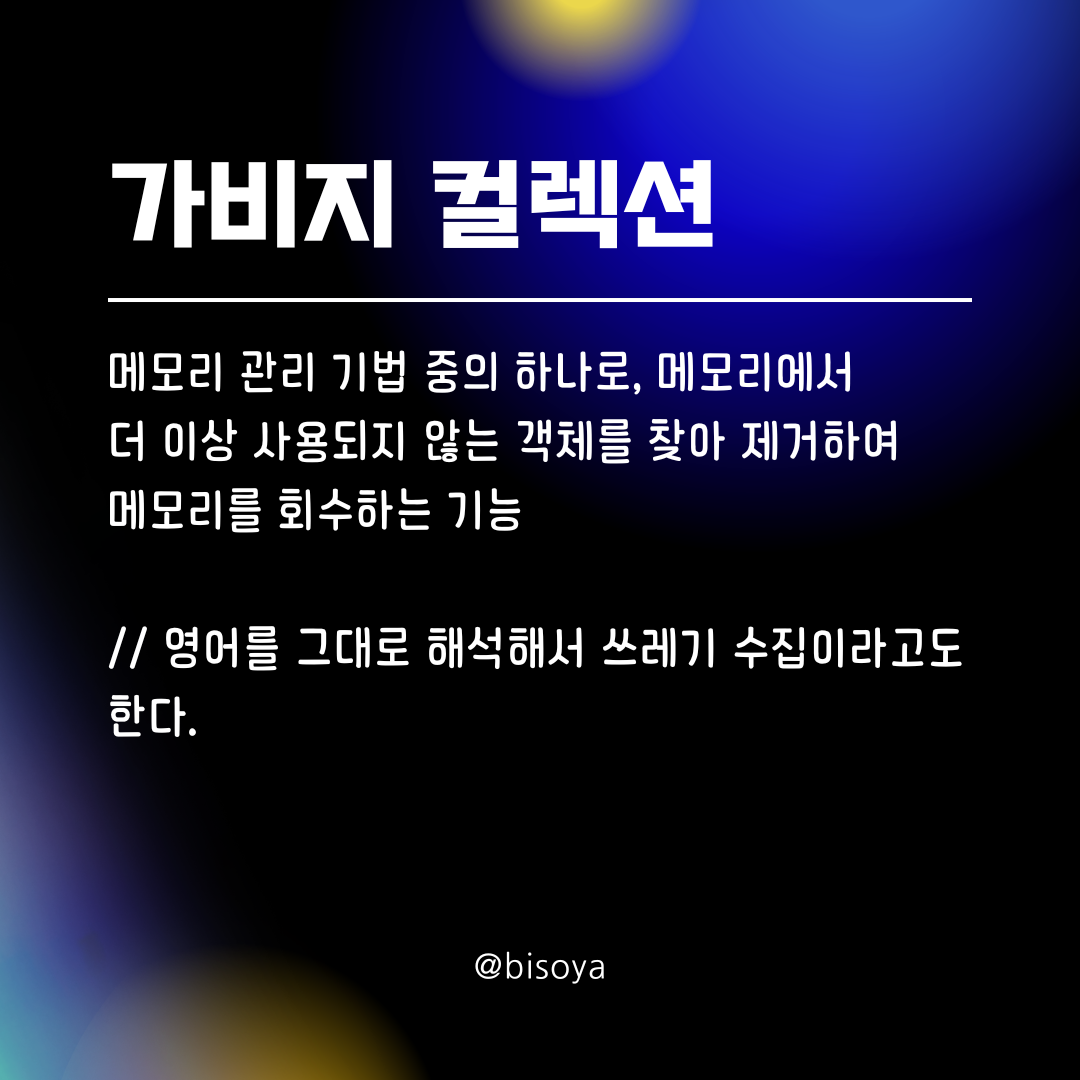 ๋ป // ๋ฉ๋ชจ๋ฆฌ ๊ด๋ฆฌ ๊ธฐ๋ฒ ์ค์ ํ๋๋ก, ๋ฉ๋ชจ๋ฆฌ์์ ๋ ์ด์ ์ฌ์ฉ๋์ง ์๋ ๊ฐ์ฒด๋ฅผ ์ฐพ์ ์ ๊ฑฐํ์ฌ ๋ฉ๋ชจ๋ฆฌ๋ฅผ ํ์ํ๋ ๊ธฐ๋ฅ