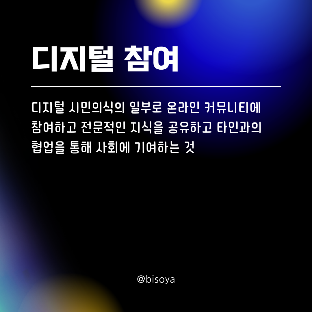 ๋œป // ๋””์ง€ํ„ธ ์‹œ๋ฏผ์˜์‹์˜ ์ผ๋ถ€๋กœ ์˜จ๋ผ์ธ ์ปค๋ฎค๋‹ˆํ‹ฐ์— ์ฐธ์—ฌํ•˜๊ณ  ์ „๋ฌธ์ ์ธ ์ง€์‹์„ ๊ณต์œ ํ•˜๊ณ  ํƒ€์ธ๊ณผ์˜ ํ˜‘์—…์„ ํ†ตํ•ด ์‚ฌํšŒ์— ๊ธฐ์—ฌํ•˜๋Š” ๊ฒƒ