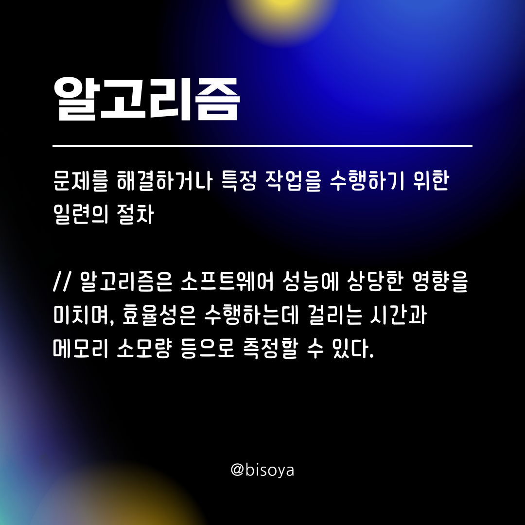 // ์๊ณ ๋ฆฌ์ฆ์ ์ํํธ์จ์ด ์ฑ๋ฅ์ ์๋นํ ์ํฅ์ ๋ฏธ์น๋ฉฐ, ํจ์จ์ฑ์ ์ํํ๋๋ฐ ๊ฑธ๋ฆฌ๋ ์๊ฐ๊ณผ ๋ฉ๋ชจ๋ฆฌ ์๋ชจ๋ ๋ฑ์ผ๋ก ์ธก์ ํ ์ ์๋ค.