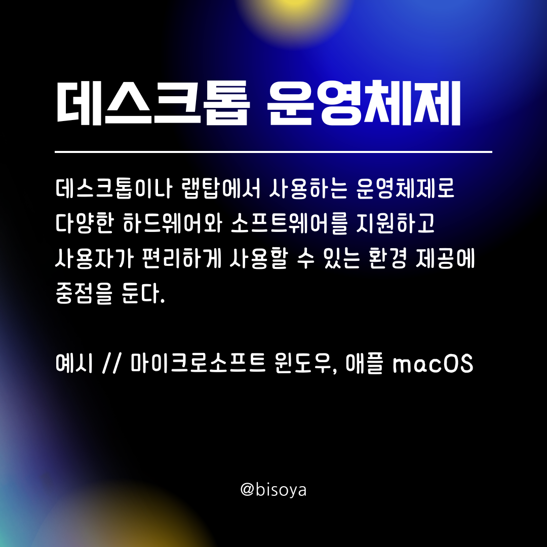 // μ©λμ λ°λΌ λ°μ€ν¬ν± μ΄μ체μ , λͺ¨λ°μΌ μ΄μ체μ , μλ² λλ μ΄μ체μ , λ€νΈμν¬ μ΄μ체μ λ‘ κ΅¬λΆν μ μλ€.