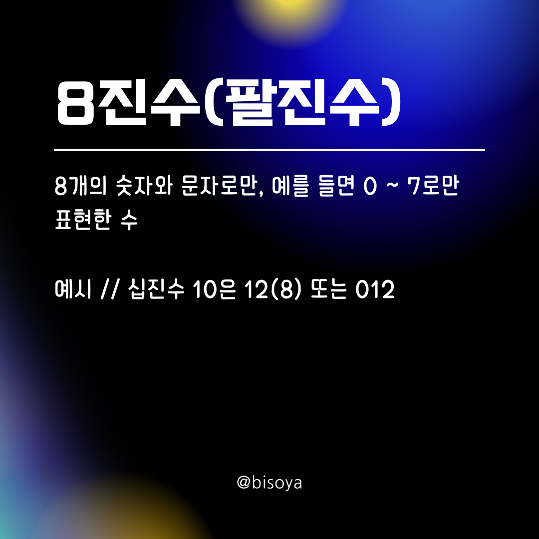 λ» // 8κ°μ μ«μμ λ¬Έμλ‘λ§, μλ₯Ό λ€λ©΄ 0 ~ 7λ‘λ§ ννν μ