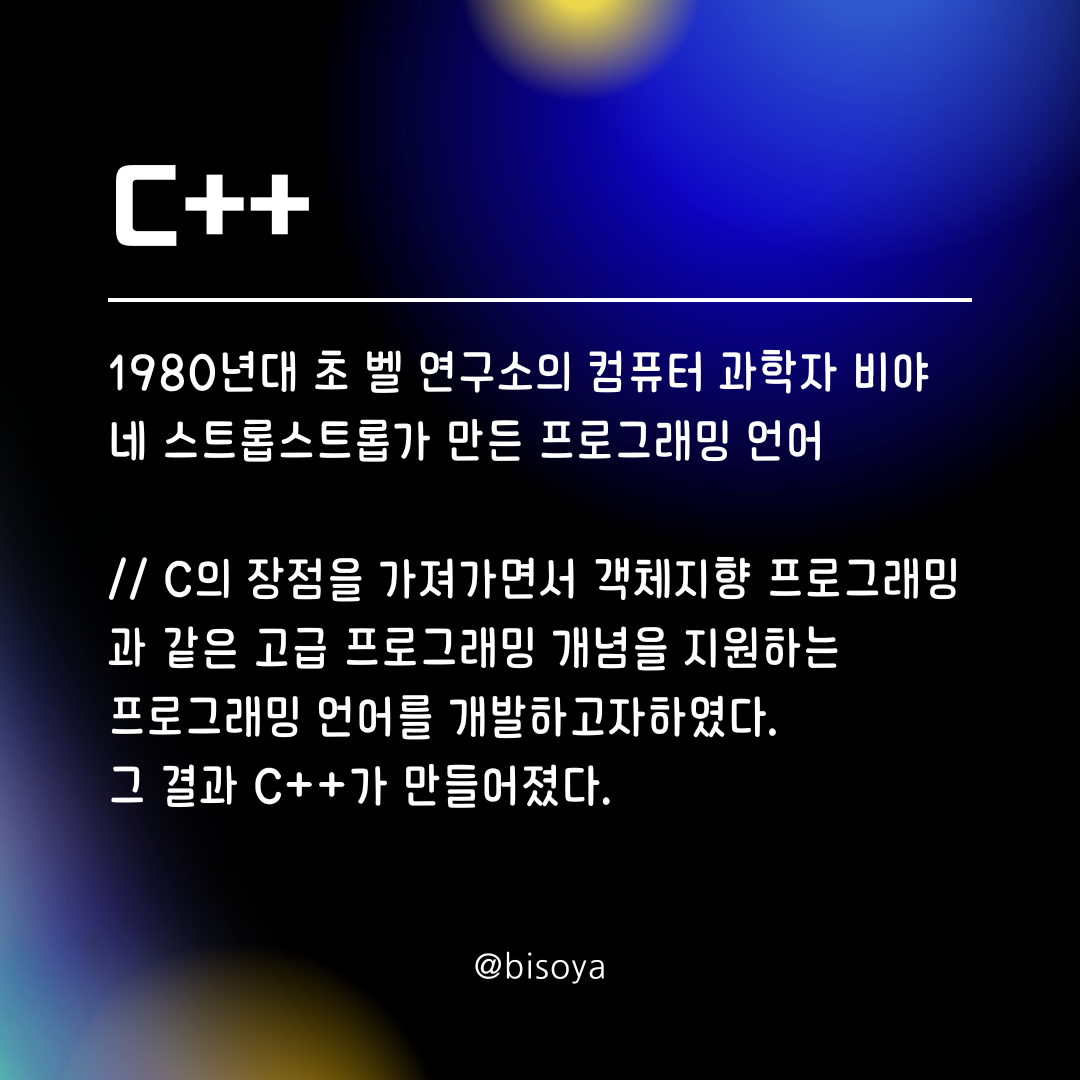 // C์ ์ฅ์ ์ ๊ฐ์ ธ๊ฐ๋ฉด์ ๊ฐ์ฒด์งํฅ ํ๋ก๊ทธ๋๋ฐ๊ณผ ๊ฐ์ ๊ณ ๊ธ ํ๋ก๊ทธ๋๋ฐ ๊ฐ๋ ์ ์ง์ํ๋ ํ๋ก๊ทธ๋๋ฐ ์ธ์ด๋ฅผ ๊ฐ๋ฐํ๊ณ ์ํ์๋ค. ๊ทธ ๊ฒฐ๊ณผ C++๊ฐ ๋ง๋ค์ด์ก๋ค.
