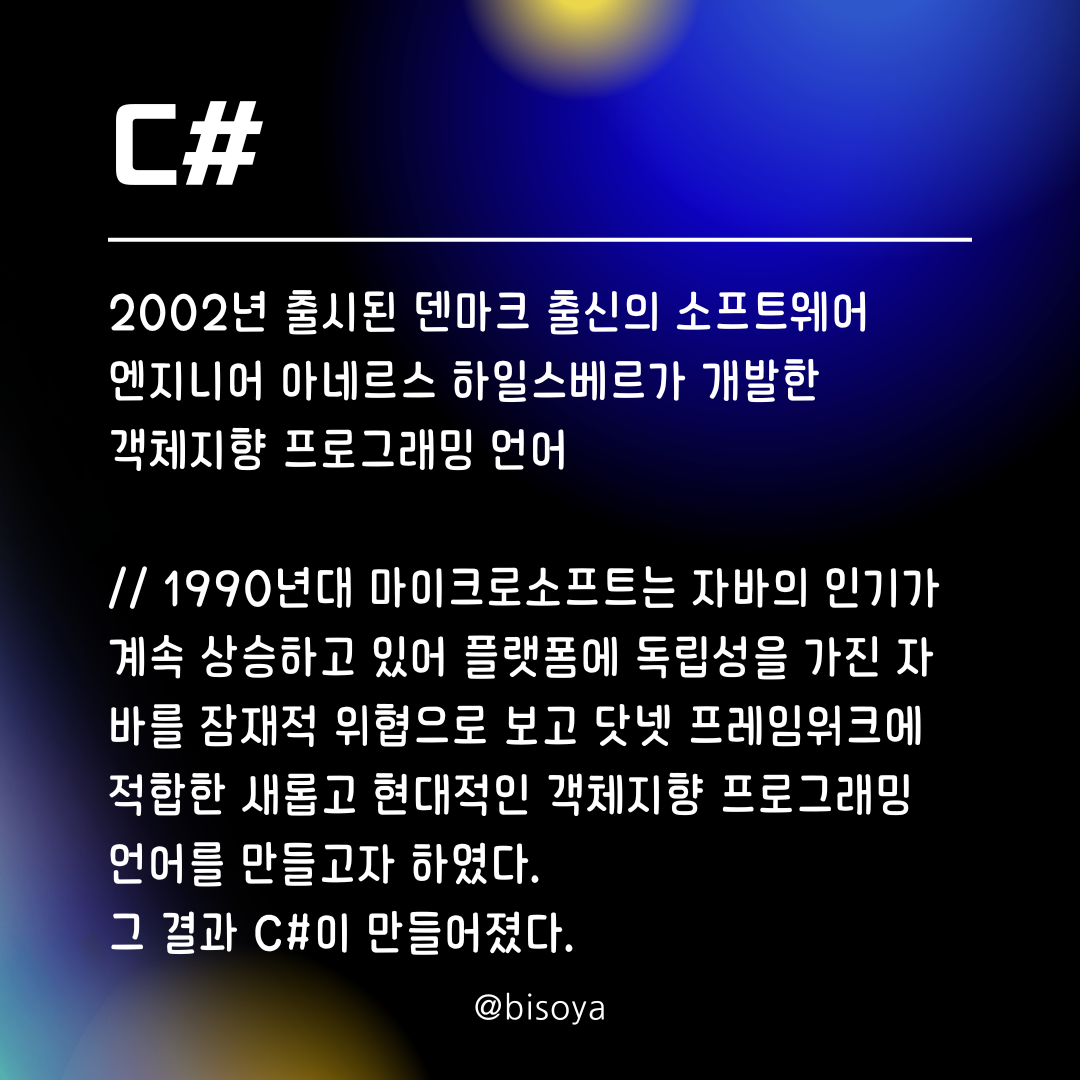 // 1990๋ ๋ ๋ง์ดํฌ๋ก์ํํธ๋ ์๋ฐ์ ์ธ๊ธฐ๊ฐ ๊ณ์ ์์นํ๊ณ ์์ด ํ๋ซํผ์ ๋ ๋ฆฝ์ฑ์ ๊ฐ์ง ์๋ฐ๋ฅผ ์ ์ฌ์ ์ํ์ผ๋ก ๋ณด๊ณ ๋ท๋ท ํ๋ ์์ํฌ์ ์ ํฉํ ์๋กญ๊ณ ํ๋์ ์ธ ๊ฐ์ฒด์งํฅ ํ๋ก๊ทธ๋๋ฐ ์ธ์ด๋ฅผ ๋ง๋ค๊ณ ์ ํ์๋ค. ๊ทธ ๊ฒฐ๊ณผ C#์ด ๋ง๋ค์ด์ก๋ค.