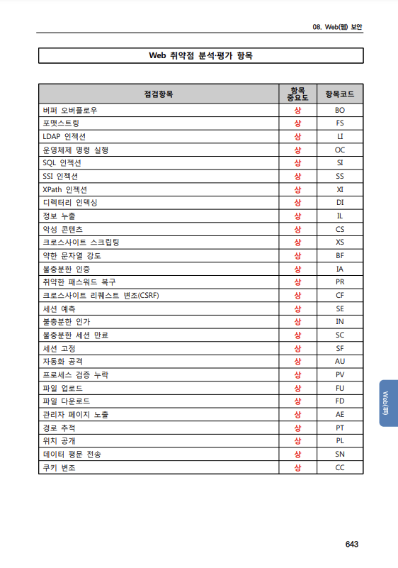 ์ผ๋ช ์ฃผํต๊ธฐ(์ฃผ์์ ๋ณดํต์ ๊ธฐ๋ฐ์์ค_๊ธฐ์ ์ _์ทจ์ฝ์ _๋ถ์_ํ๊ฐ_๋ฐฉ๋ฒ_์์ธ๊ฐ์ด๋.pdf)์ 8. Web ์น์ ์๋ ์ด 28๊ฐ ํญ๋ชฉ ๋ชจ๋๋ฅผ ์ค์ตํ๊ณ ๋ธ๋ก๊ทธ์ ์ ๋ฆฌํ์ฌ ํฌ์คํ ํ๋ ๊ฒ์ด๋ค.