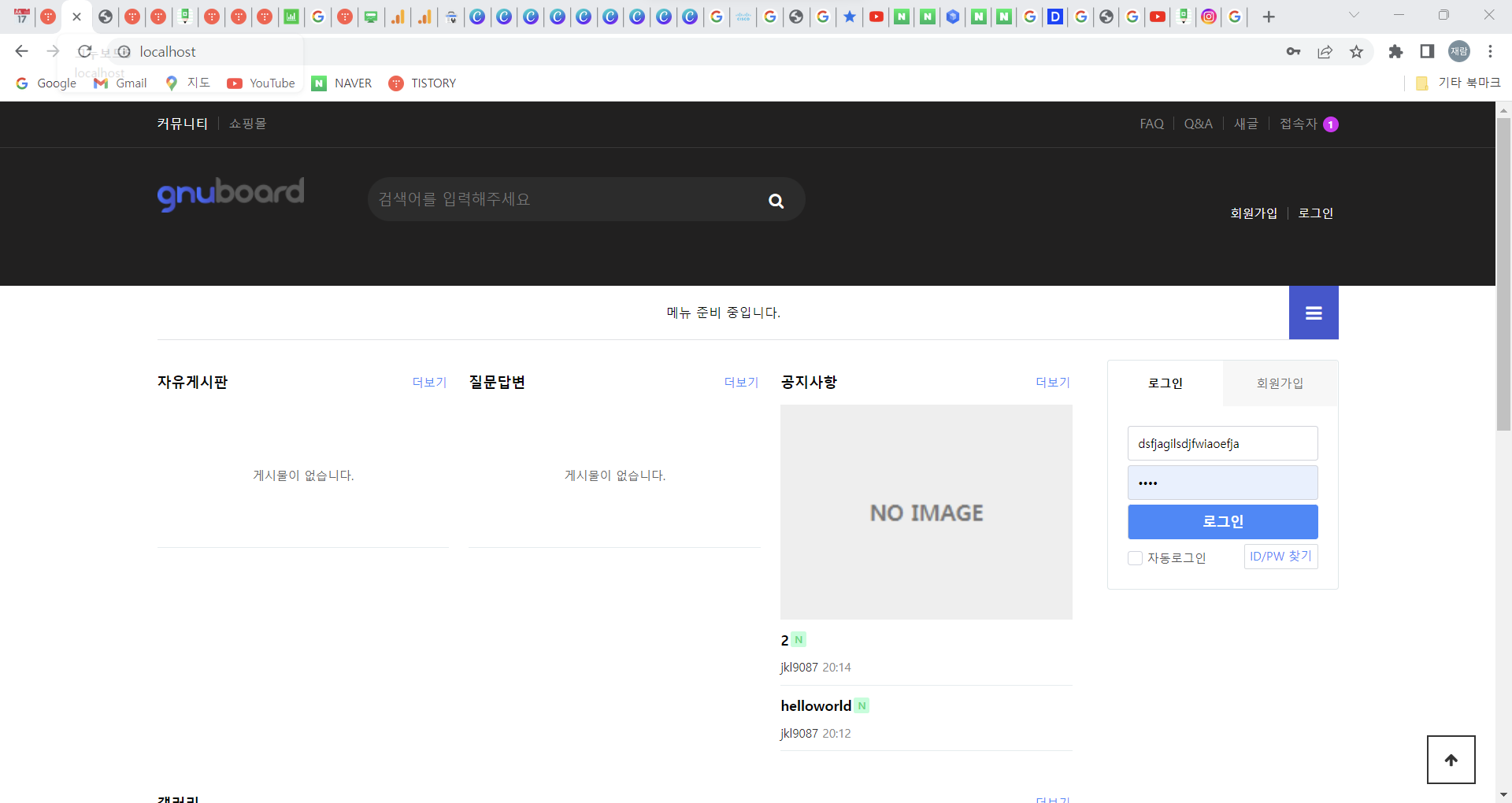 Step 4) ๊ฒ์๊ธ ์์ฑ ์ ๋๋์ ๋ฌธ์์ด์ ์ ๋ ฅํ์ฌ ์๋ฌ ํ์ด์ง๋ ์ค๋ฅ๊ฐ ๋ฐ์ํ๋์ง ์ ๊ฒ // ์ํธ