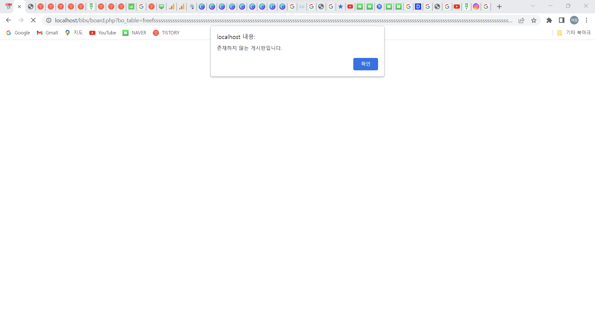 Step 5) URL ํ๋ผ๋ฏธํฐ ๊ฐ์ ๋๋์ ๋ฌธ์์ด ์ ๋ ฅ ์ ์๋ฌ ํ์ด์ง๋ ์ค๋ฅ๊ฐ ๋ฐ์ํ๋์ง ์ ๊ฒ // ์ํธ