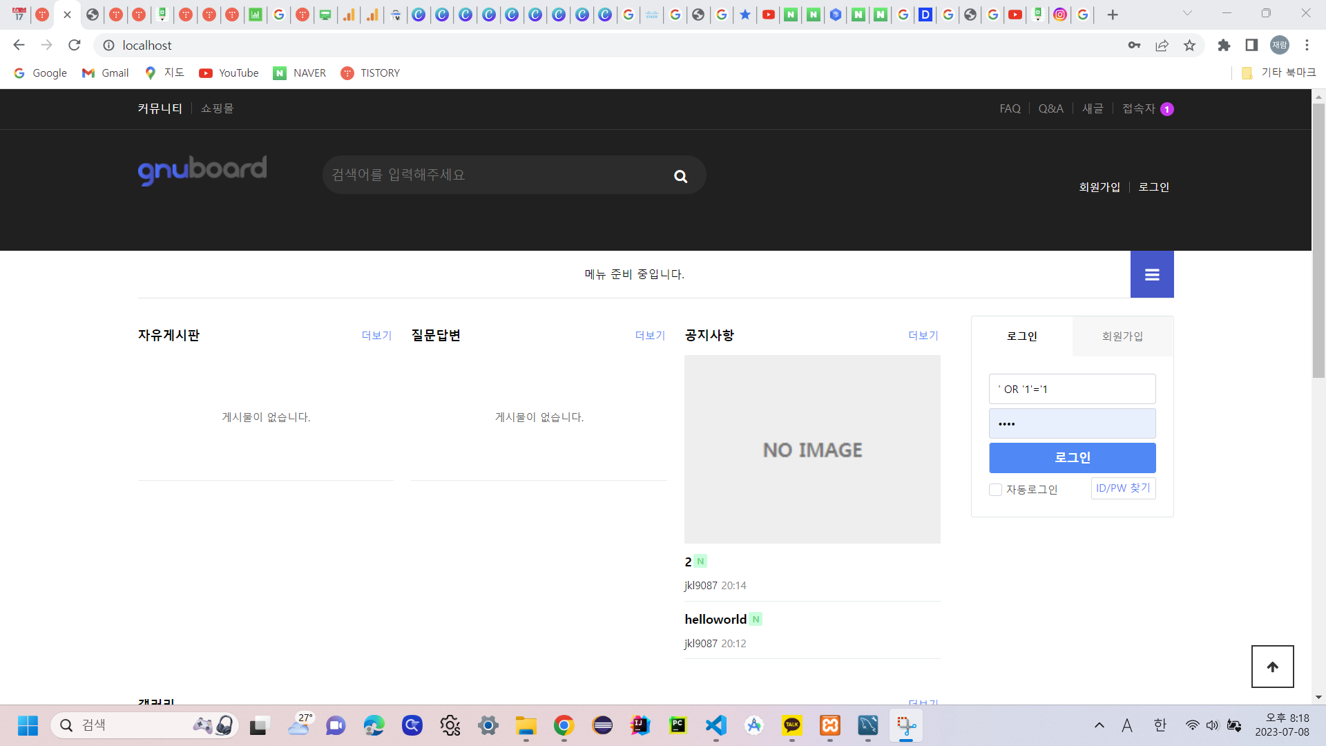 Step 3) ๋ก๊ทธ์ธ ํ์ด์ง์ ์ฐธ์ด ๋๋ SQL ์ฟผ๋ฆฌ๋ฅผ ์ ๋ฌํ์ฌ ๋ก๊ทธ์ธ๋๋์ง ํ์ธ // ์ํธ