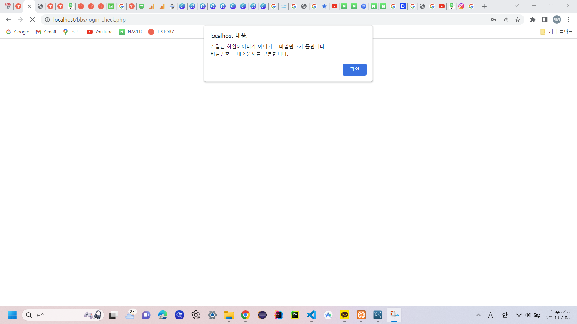 ๋ค์๊ณผ ๊ฐ์ด ์ฌ์ฉ์์ ์์ด๋์ ๋น๋ฐ๋ฒํธ๋ฅผ ํ์ธํ๊ณ ์ผ์นํ๋ฉด ๋ก๊ทธ์ธ์ ํ๋ PHP ํ๋ก๊ทธ๋จ์ด ์๋ค๊ณ ํ์.